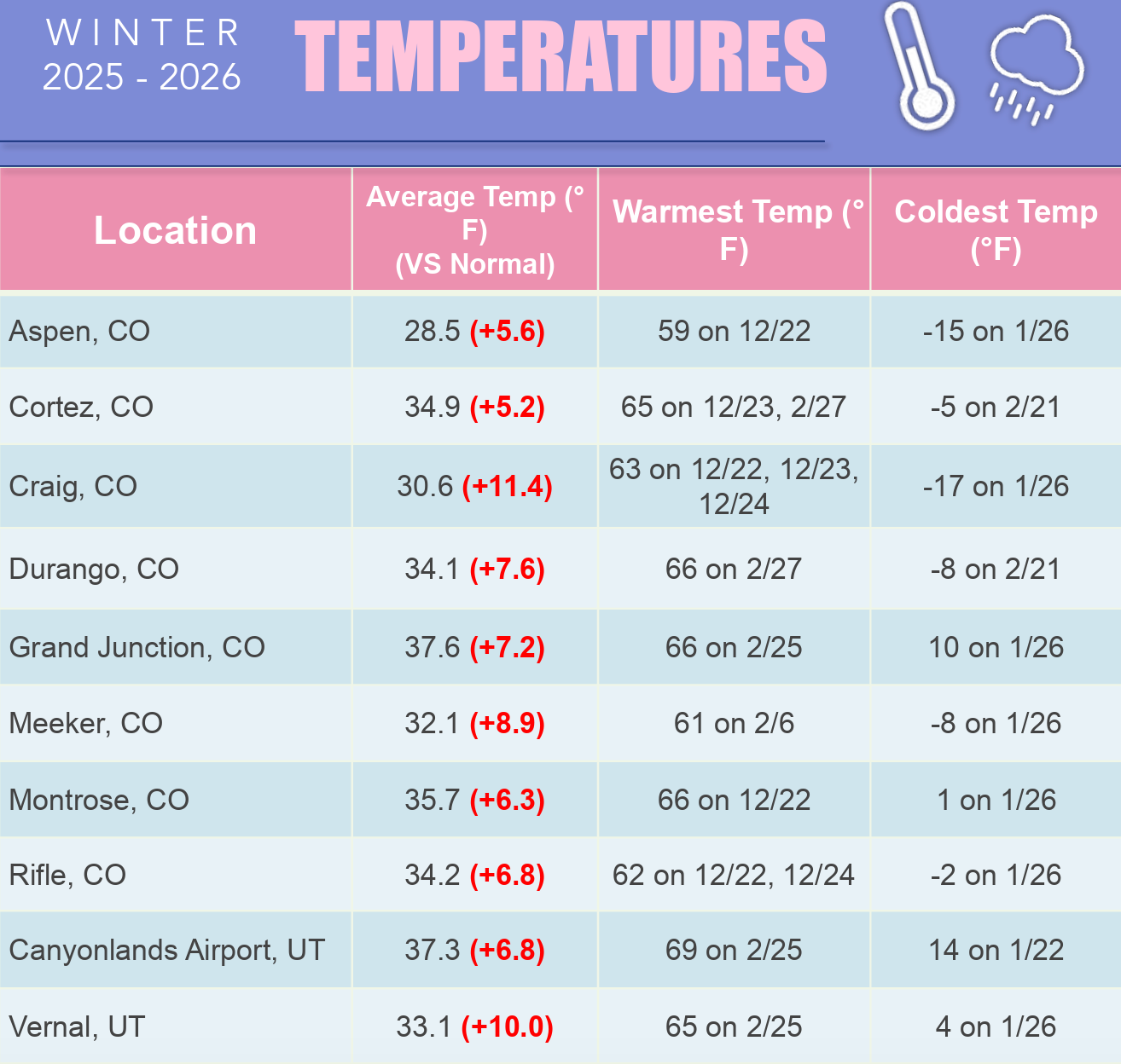Of course, this is coming on the heels of the warmest meteorological winter (Dec-Feb) on record for many places. Here’s a sampling from the National Weather Service’s Grand Junction, Colorado, office.