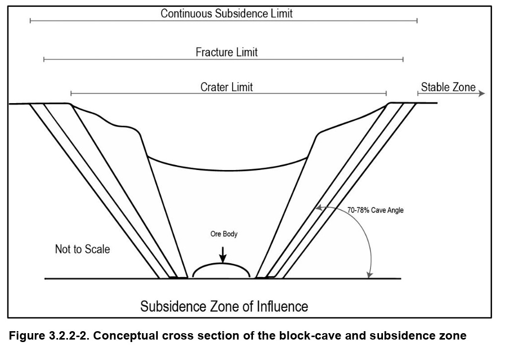 Because of the depth of the deposit, the mine would be underground rather than open pit, and would use the cave panel method. This may make it less visible initially, but the magnitude of the endeavor will ultimately have significant impacts on a large swath of public and private lands. As material is removed from underground, the surface will sink, or subside, creating a huge crater and destroying Chíchʼil Bił Dagoteel. Dewatering the mine workings will affect the region’s hydrology, diminishing or drying up springs and “groundwater dependent ecosystems.” And the tailings pile is expected to cover thousands of acres in Dripping Springs Wash, basically filling a desert waterway with a mountain of acid-generating, metal-laden waste.