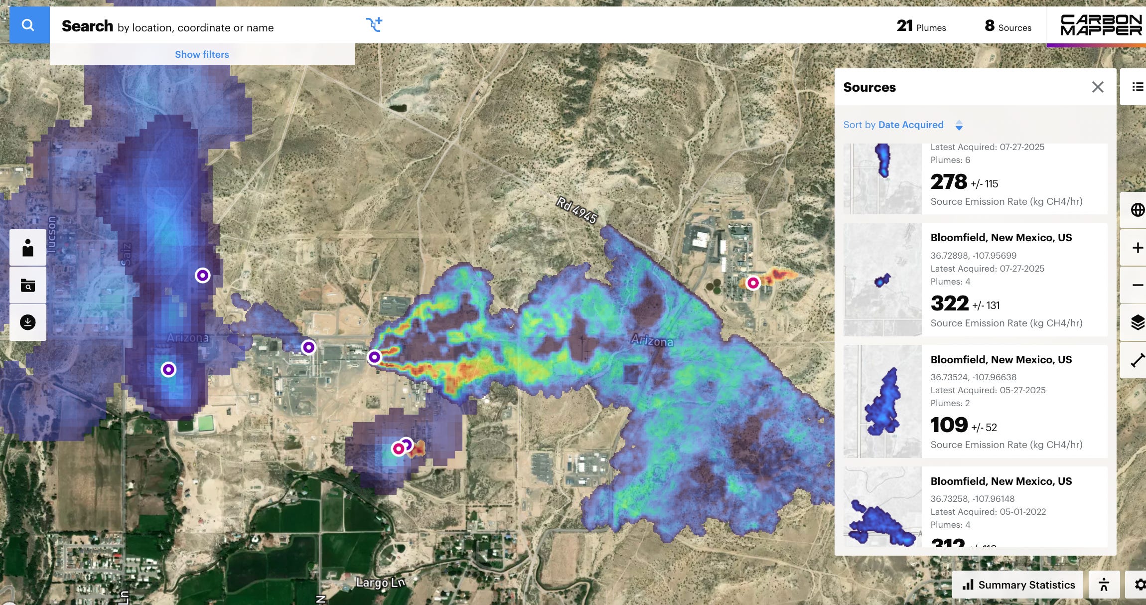 Itâs a bit frightening not only because it reveals so many sources of greenhouse gases, but also because we know that if a leaky oil and gas well is oozing methane, itâs also probably emitting volatile organic compounds and other nasty pollutants that can harm human health. The map includes the date(s) the images were made along with the rate of emissions.