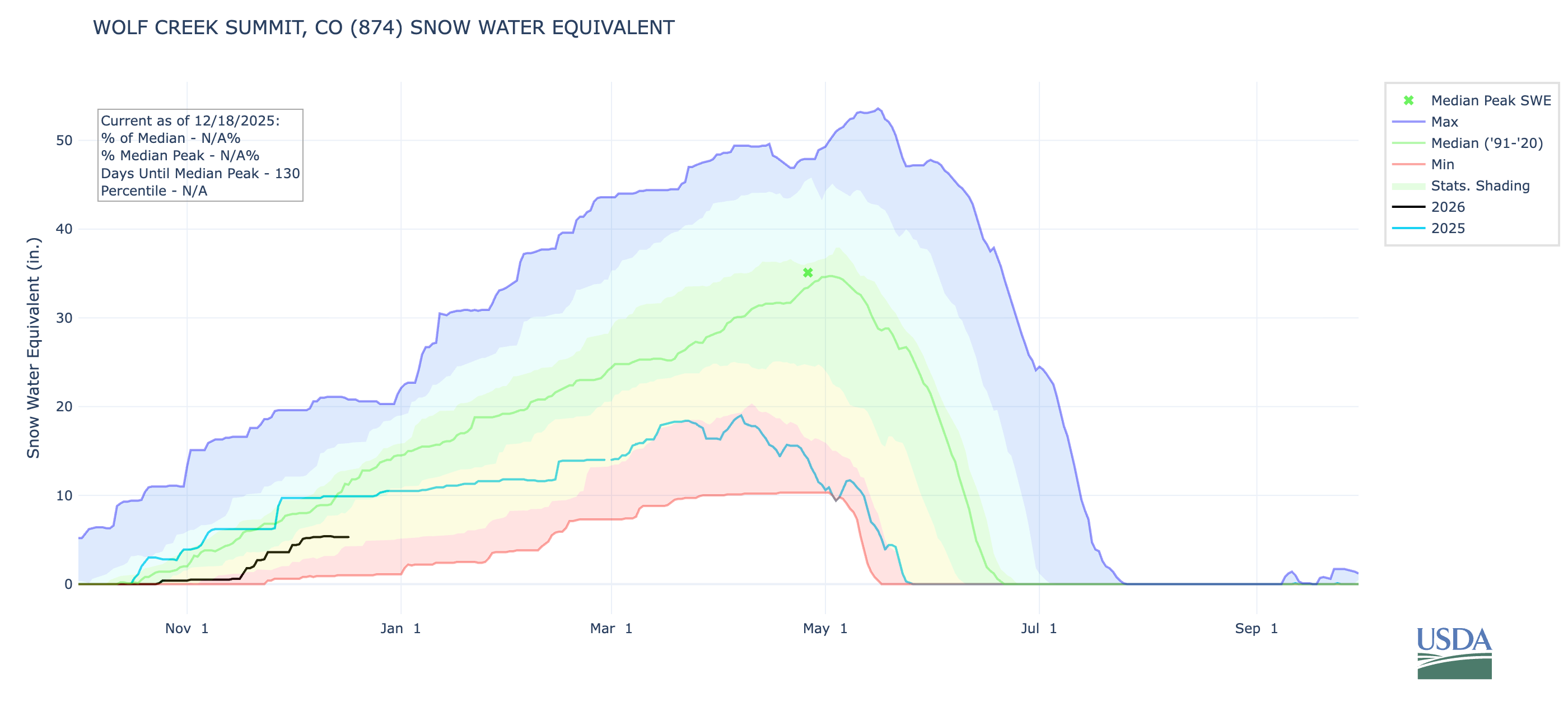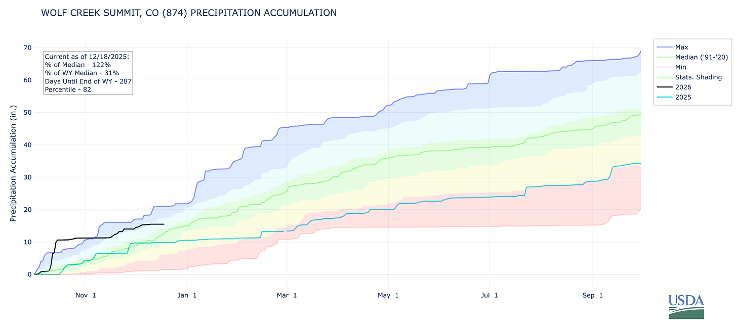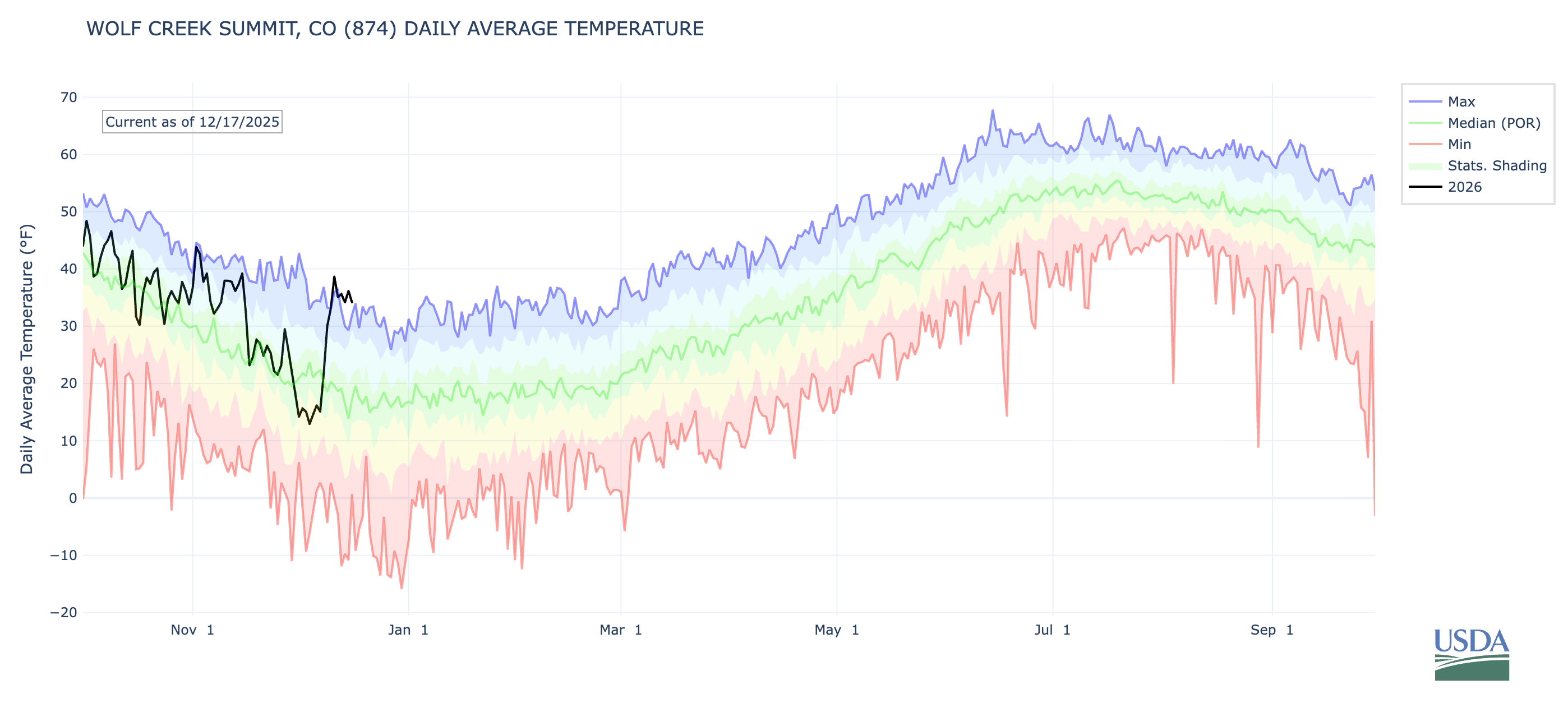 The following graphics from the Wolf Creek Pass SNOTEL station tell the story of most of the region: