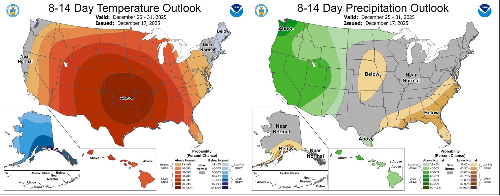 Expect the same to continue into the New Year. While Utah and western Colorado may get some precipitation, it’s likely to be either rain or sloppy snow — i.e. Schneeregen — due to unseasonably high predicted temperatures.