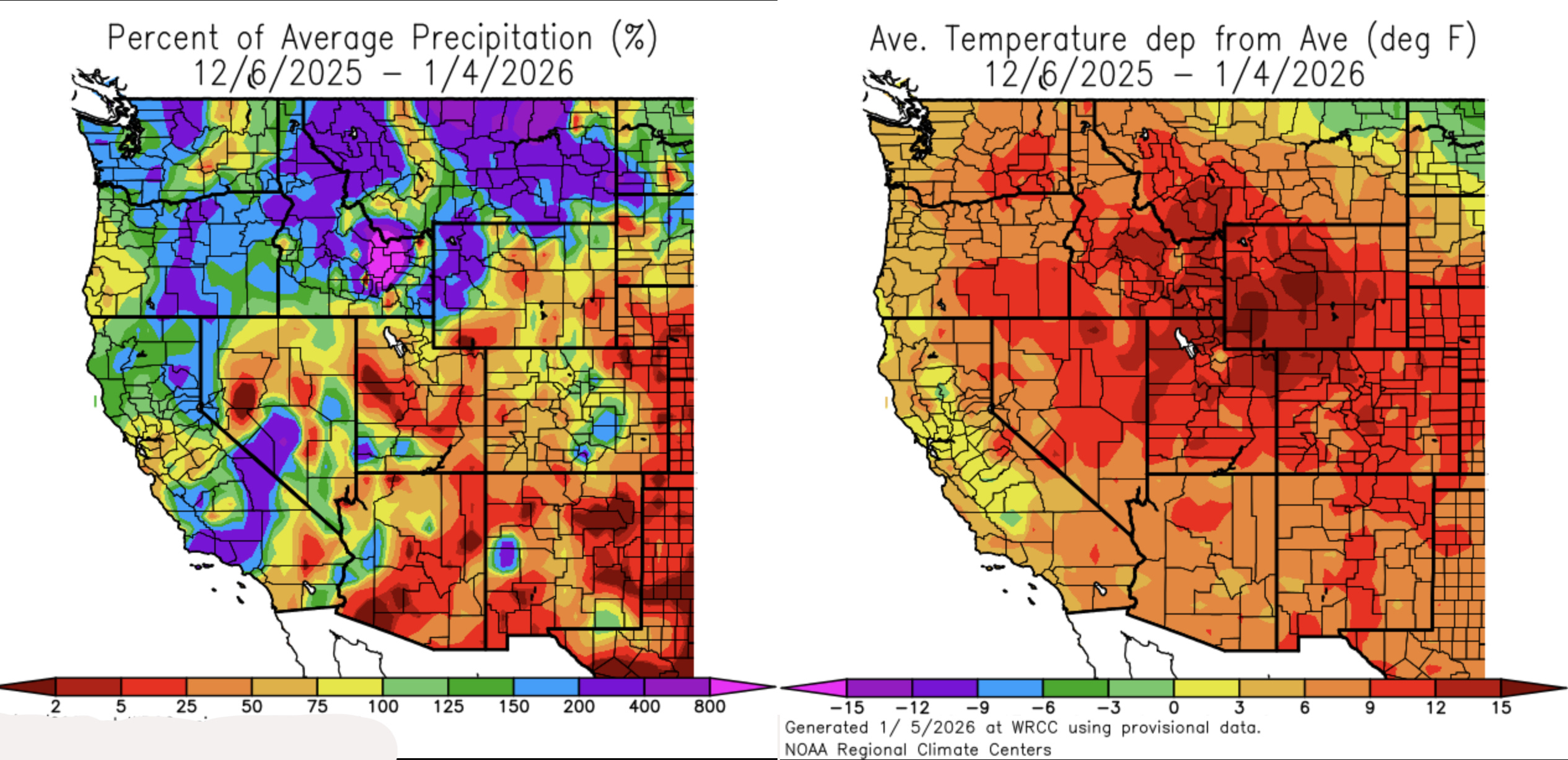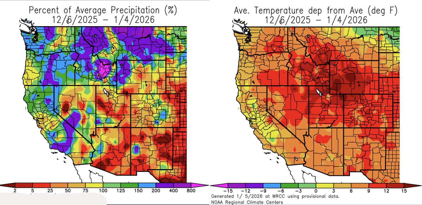 During those years, however, the lack of snow was caused by a lack of precipitation. This year, itâs the result of a combination of light winter precipitation and unusually warm temperatures throughout December and early January. A recovery will require not only more snowfall, but also cooler temperatures, making the outlook a little grimmer.