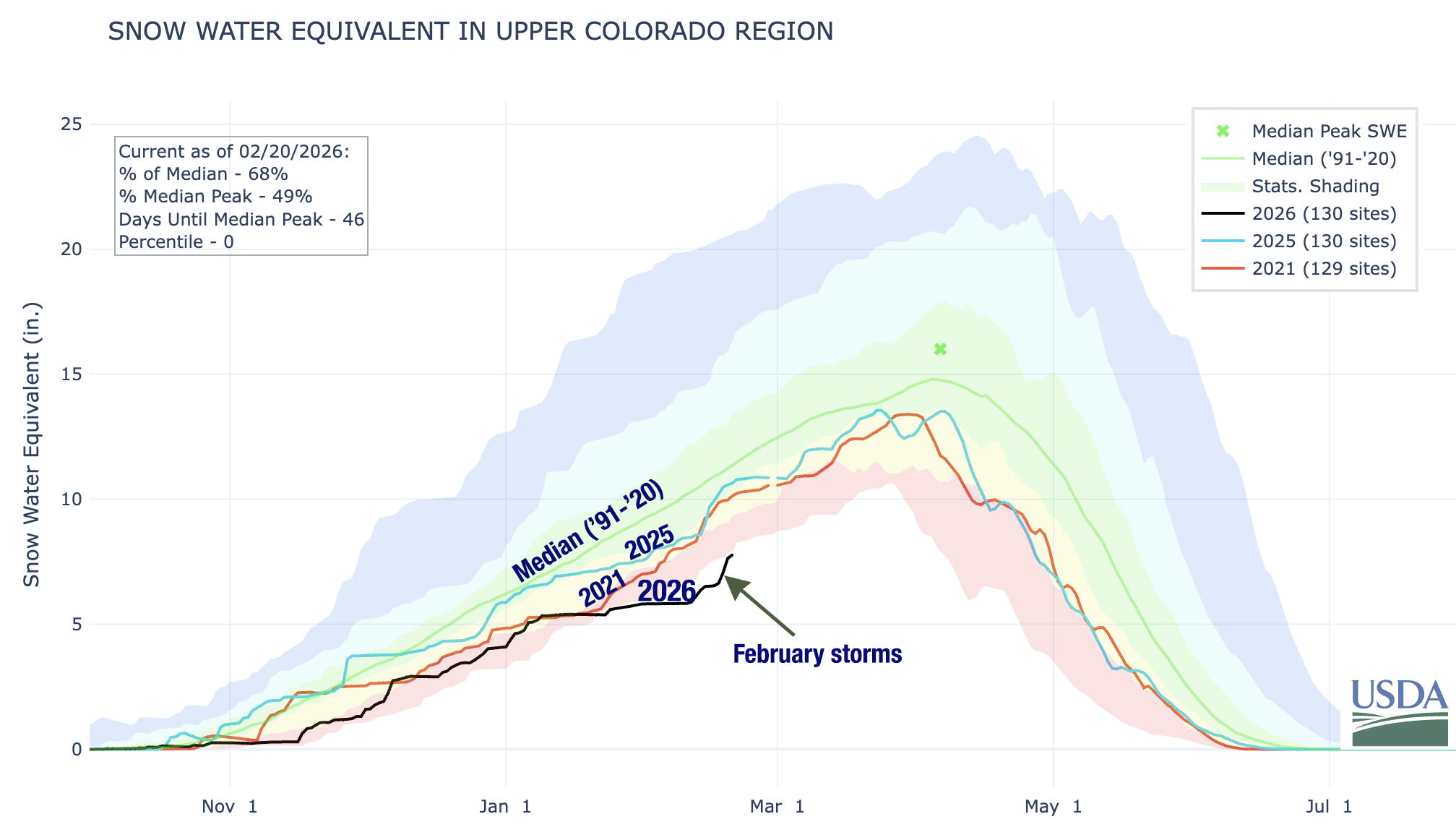 The storms have not been enough to boost snowpack to anywhere near “normal” levels, nor have they significantly altered the rather grim spring runoff forecasts. Indeed, the aggregate snowpack at 130 SNOTEL sites in the Upper Colorado River Basin remains at a record low. More storms are on the way.