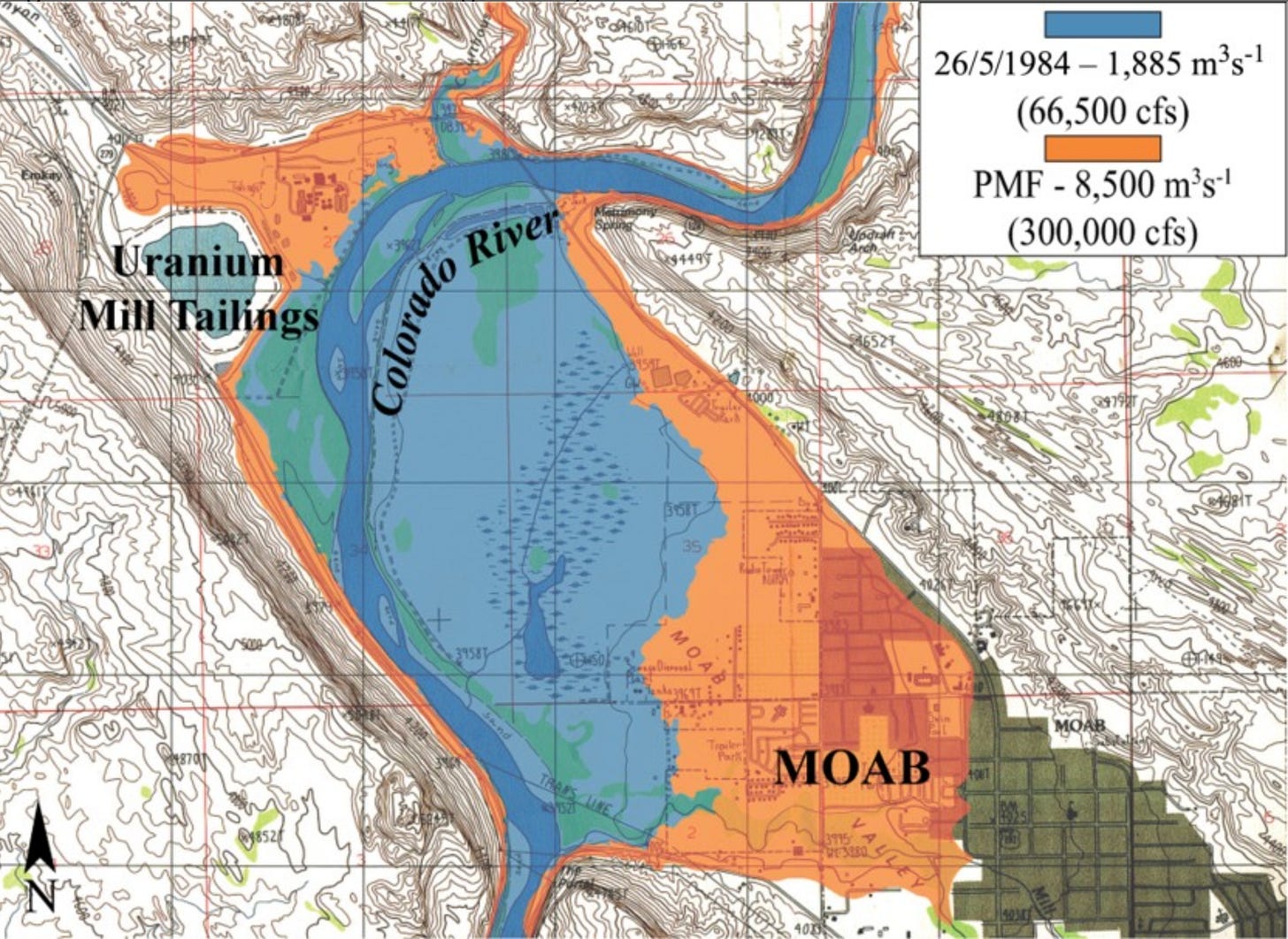 The Colorado River near Moab has experienced 44 floods during the last two millennia with flows ranging from 63,500 cfs to 325,000 cfs. (For context, the 1983 runoff, which threatened Glen Canyon Dam, reached 62,000 cfs on this stretch of river and in 1984 it hit 70,300). Most of those floods occurred during the last 500 years.