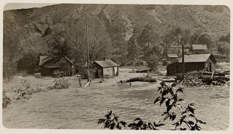 That 1911 storm dissipated over the next couple of days, leaving a bright sun to illuminate the river valleys, newly scoured of the roads, houses, bridges, railroad tracks, and other detritus that humans had littered the valleys with over the previous decades. But the folks of the San Juan Basin soon went to work rebuilding — quite often in exactly the same spots that had flooded so catastrophically.