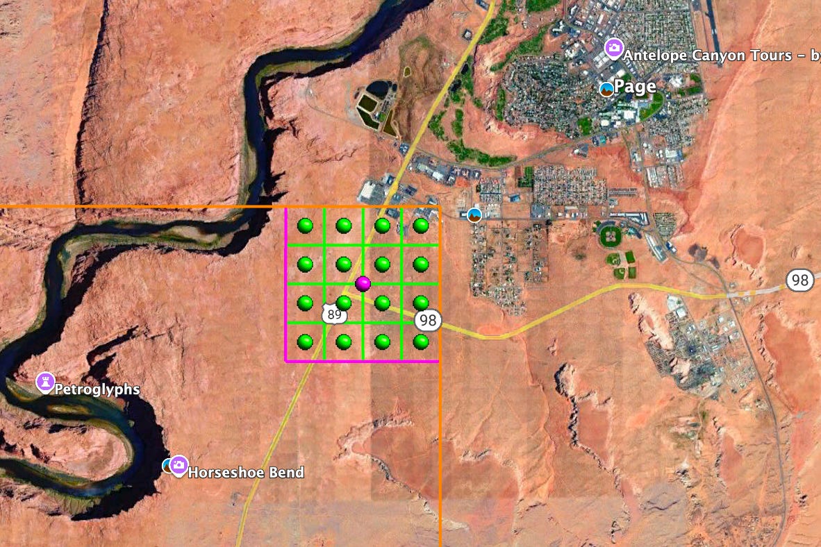 The purple dot in the green grid marks the approximate location of the proposed data center in Page, Arizona. Local opposition is growing, based on power use, water use, noise, and proximity to Horseshoe Bend. Details remain sketchy: Itâs not clear who, exactly, the developer is; a land-purchase agreement indicates the data center might generate its own power, but no fuel source is listed â and 1 GW is the capacity of a big coal or natural gas plant; they plan to âacquire, develop, construct, and use water in a sufficient quantity and quality to continuously serve the Data Center and Energy Project,â yet donât say where they would get this water; and the developer said the project would create 500 permanent jobs, which is a rather large staff to oversee a bunch of computer processing units. A majority of the city council has supported the $7 million land sale, which is contingent on a successful feasibility study, and the attendant tax revenues and jobs. That is not a surprise given the economic blow dealt by Navajo Generating Stationâs 2019 closure and lower visitor numbers at Lake Powell and Glen Canyon National Recreation Area. But local opposition is growing and may derail the plans â if the lack of water doesnât.