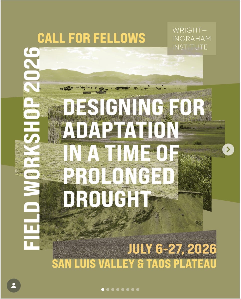 The Wright-Ingraham Institute is now taking applications for its three-week immersive fellowship for graduate students and early-career professionals in science, design, policy, the arts, and beyond. This year’s field workshop focuses is on “designing for adaptation in a time of prolonged drought,” and will be held in the San Luis Valley and Taos Plateau from July 6-27. Read more and apply here.